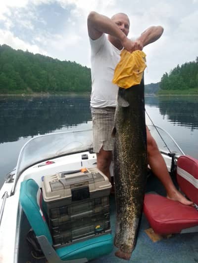 Wielki sum złowiony w Zalewie Pilchowickim