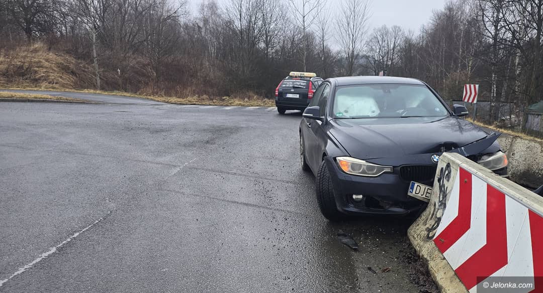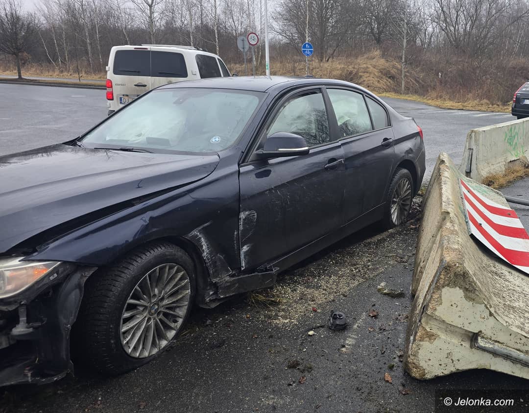 Wjechał w betonowe ogrodzenie drogi