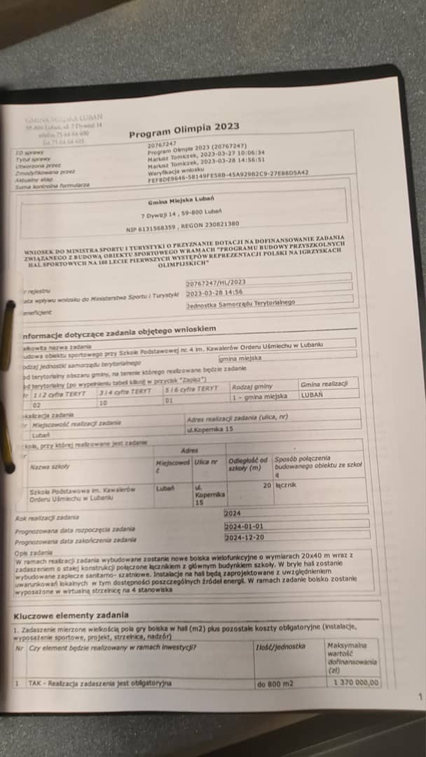Wniosek do "Olimpii"