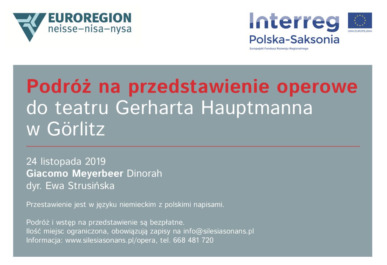 Podróż i wstęp na przedstawienie są bezpłatne. Liczba miejsc ograniczona, obowiązują zapisy na info@silesiasonans.pl.