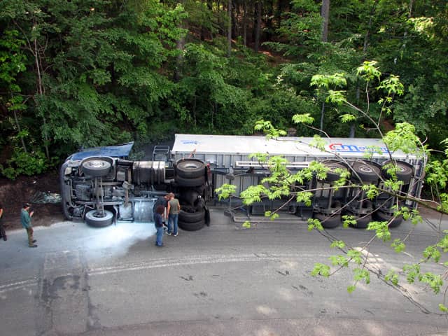 Na tym odcinku przejeżdżają setki tirów w tygodniu. Niestety dla niektórych jazda kończy się w ten sposób.
