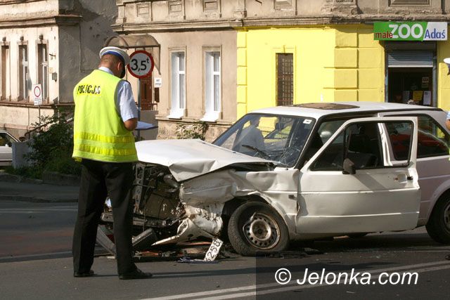 Najpewniej kierująca VW 59-letnia kobieta, wyjeżdżając z ul. Traugutta, nie ustąpiła pierwszeństwa przejazdu o trzy lata młodszemu kierowcy skody. Strażacy musieli uwalniać zakleszczoną w aucie sprawczynię. Poszkodowany kierowca trafił do szpitala. Lekarze ustalają jego obrażenia, a policja – stan trzeźwości uczestników kolizji.