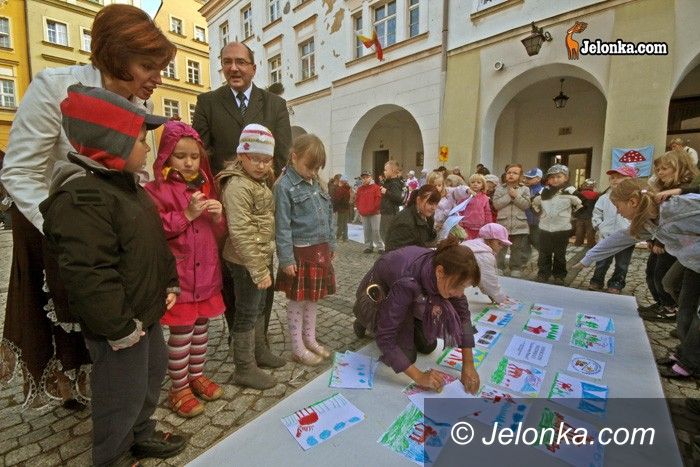 Przy ratuszu wszystkich uczestników powitała Bogumiła Lepieszo, dyrektorka Przedszkola nr 10. – To już trzeci nasz plener. Poprzednie mieliśmy rok temu przy ratuszu oraz w Parku Zdrojowym w Cieplicach – powiedziała. Dzieci do rysowania nie trzeba było zachęcać. Tematem pleneru był jelonek. Nie ten wielki, herbowy, którym zachwycił się Książe Bolesław Krzywousty, ale – malutki, podobny do tego wyrzeźbionego przez Lewana Mantidze. – Macie pół godziny – oznajmiła B. Lepieszo.