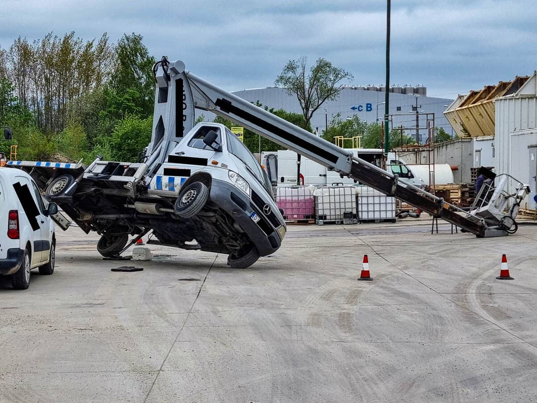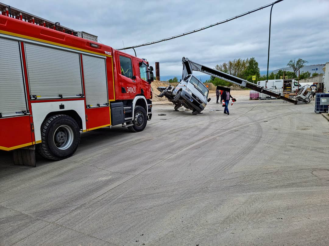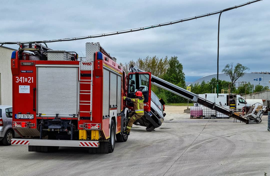 Wywrócił się podnośnik, rany odniósł mężczyzna