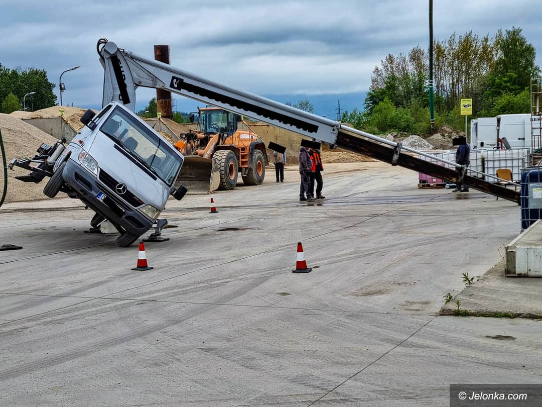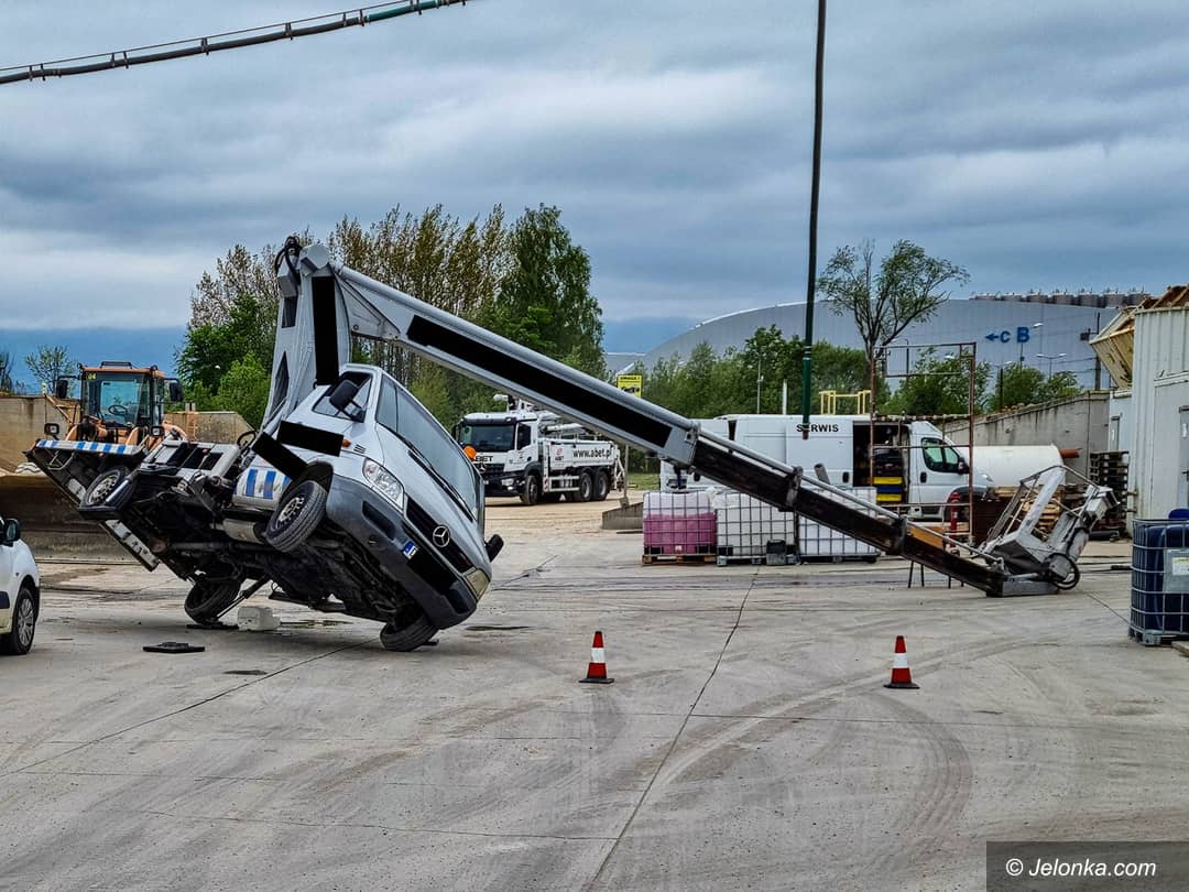 Wywrócił się podnośnik, rany odniósł mężczyzna