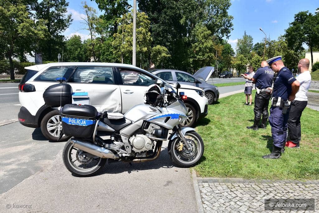 Zderzenie dwóch aut przy fontannach