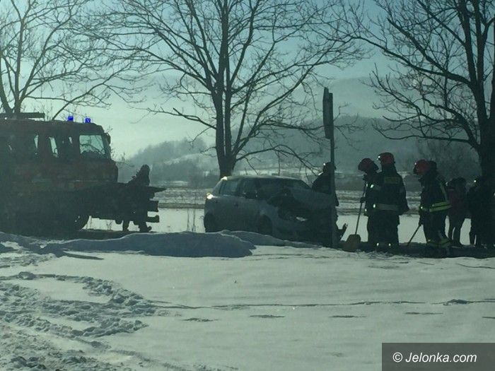 Zderzenie dwóch samochodów w Łomnicy