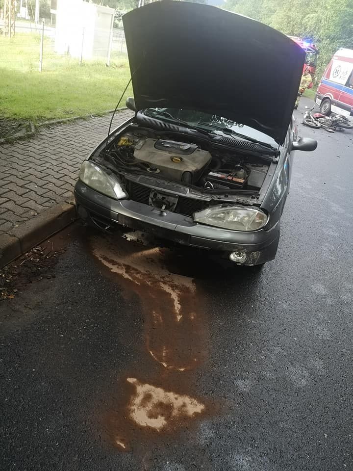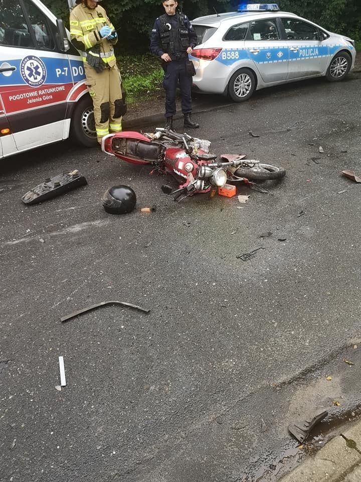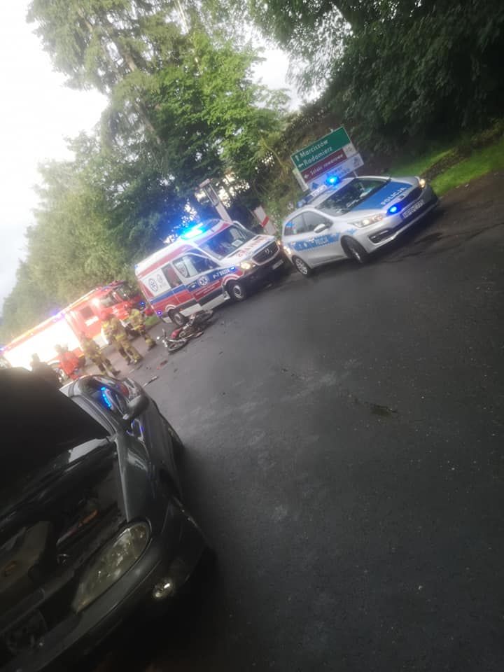 Zderzenie motocykla z samochodem osobowym