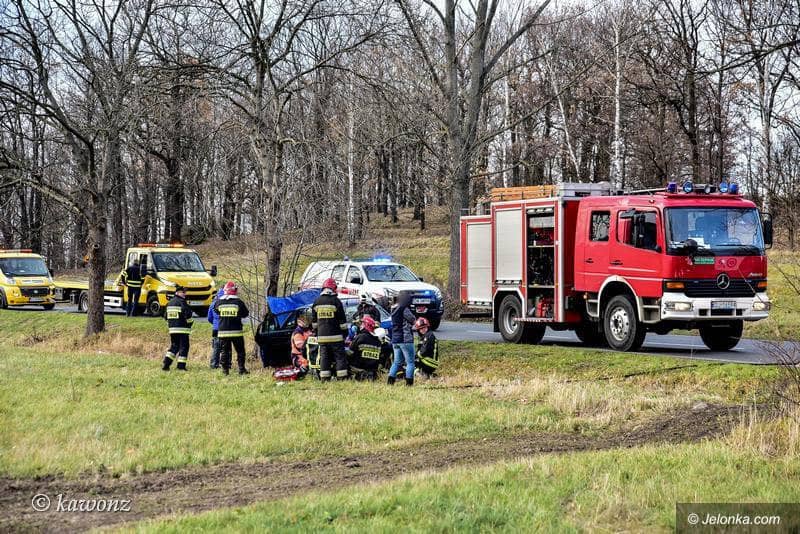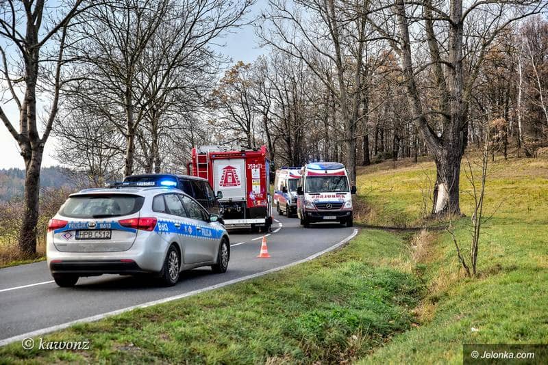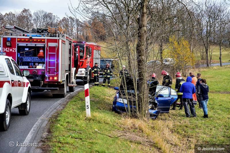 Zderzenie skody z drzewem w Łomnicy