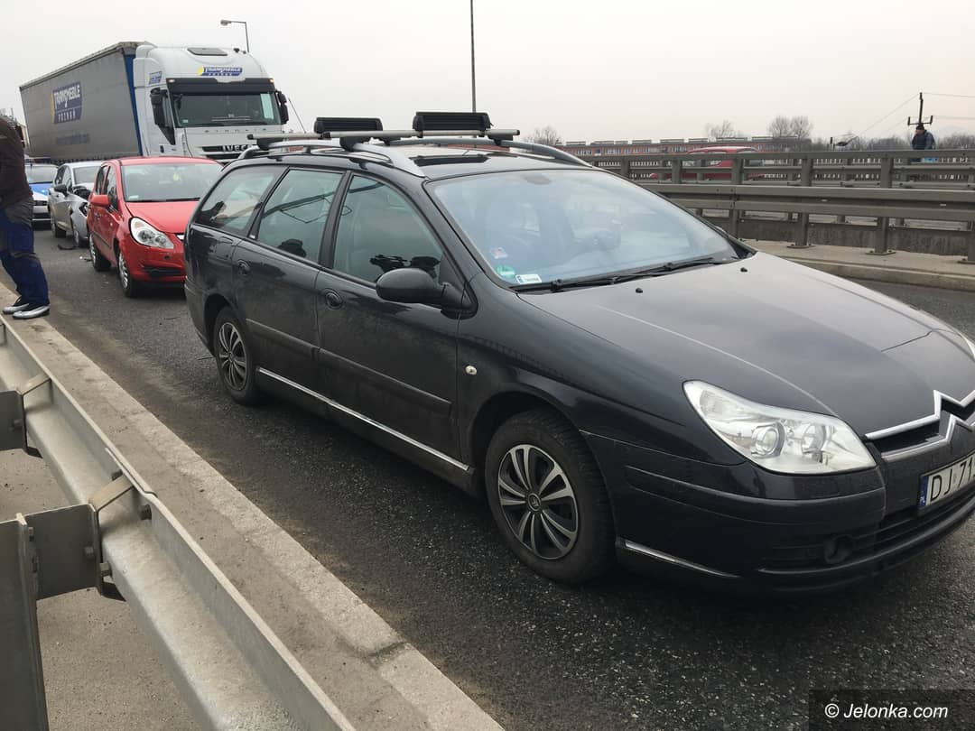 Zderzenie trzech aut na estakadzie