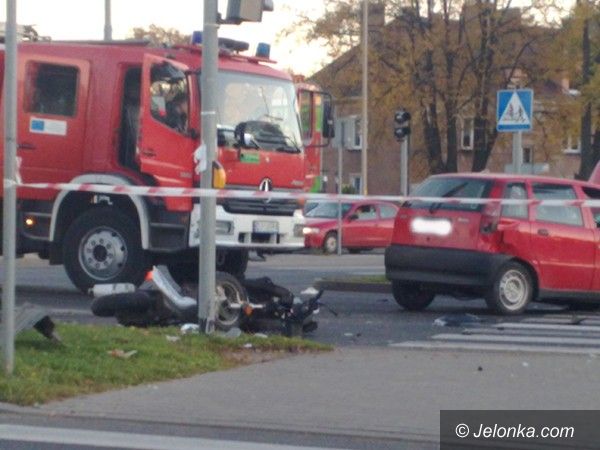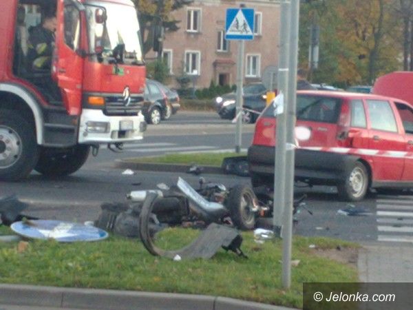 Zderzyły się dwa samochody i motorowerzysta na skrzyżowaniu Alei Jana Pawła II i ul. Grunwaldzkiej