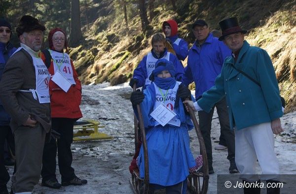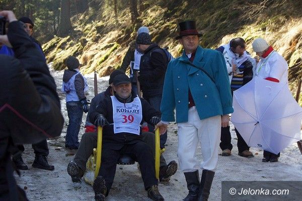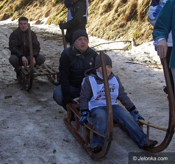 Zjazd rogatymi na resztkach śniegu