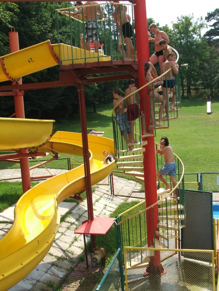 Zjeżdżali rynną na czas