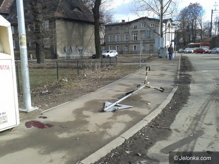 Znak drogowy spadł na pieszą. Kobieta trafiła do szpitala