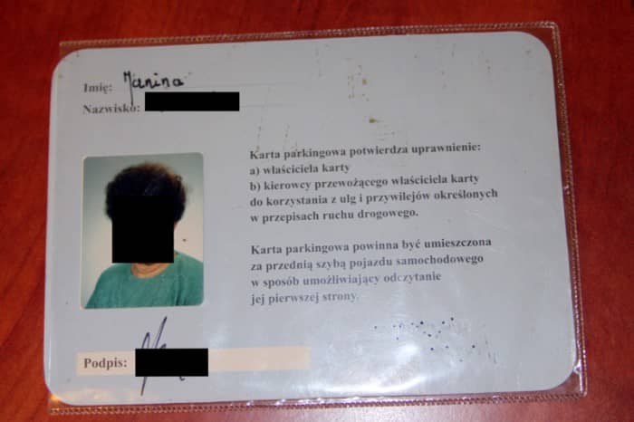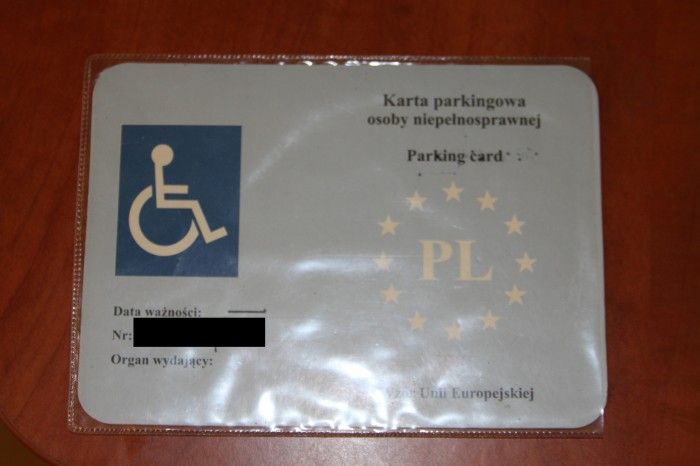 Znaleziono kartę parkingową