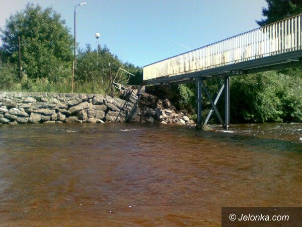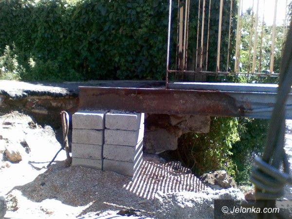 Zniszczony mostek i mur oporowy. Kuszą licho