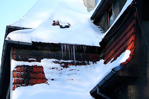 Niebezpieczne sople przy ul. Armii Krajowej na budynku Szkoły Podstawowej nr 2. Ma on jeden z najdłuższych dachów wśród jeleniogórskich budowli.